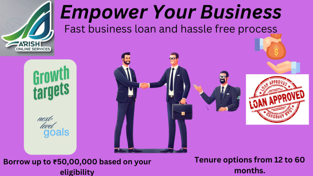 At Arish online services, we offer tailored business loan solutions to help entrepreneurs and business owners take their ventures to the next level. Whether you need working capital, want to expand operations, or invest in equipment, we're here to support your ambitions.